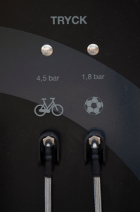 Servicestationen har två luftpumpar. En luftpump för cyklar med de vanligaste ventilerna: presta, schräder och dunlop, samt en separat pump för bollar med lägre tryck.