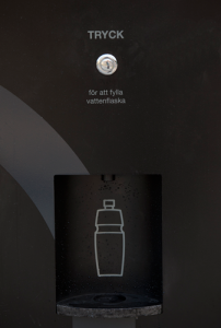 Vattenflaskan kan enkelt fyllas med vatten på servicestationen genom en enkel knapptryckning.
