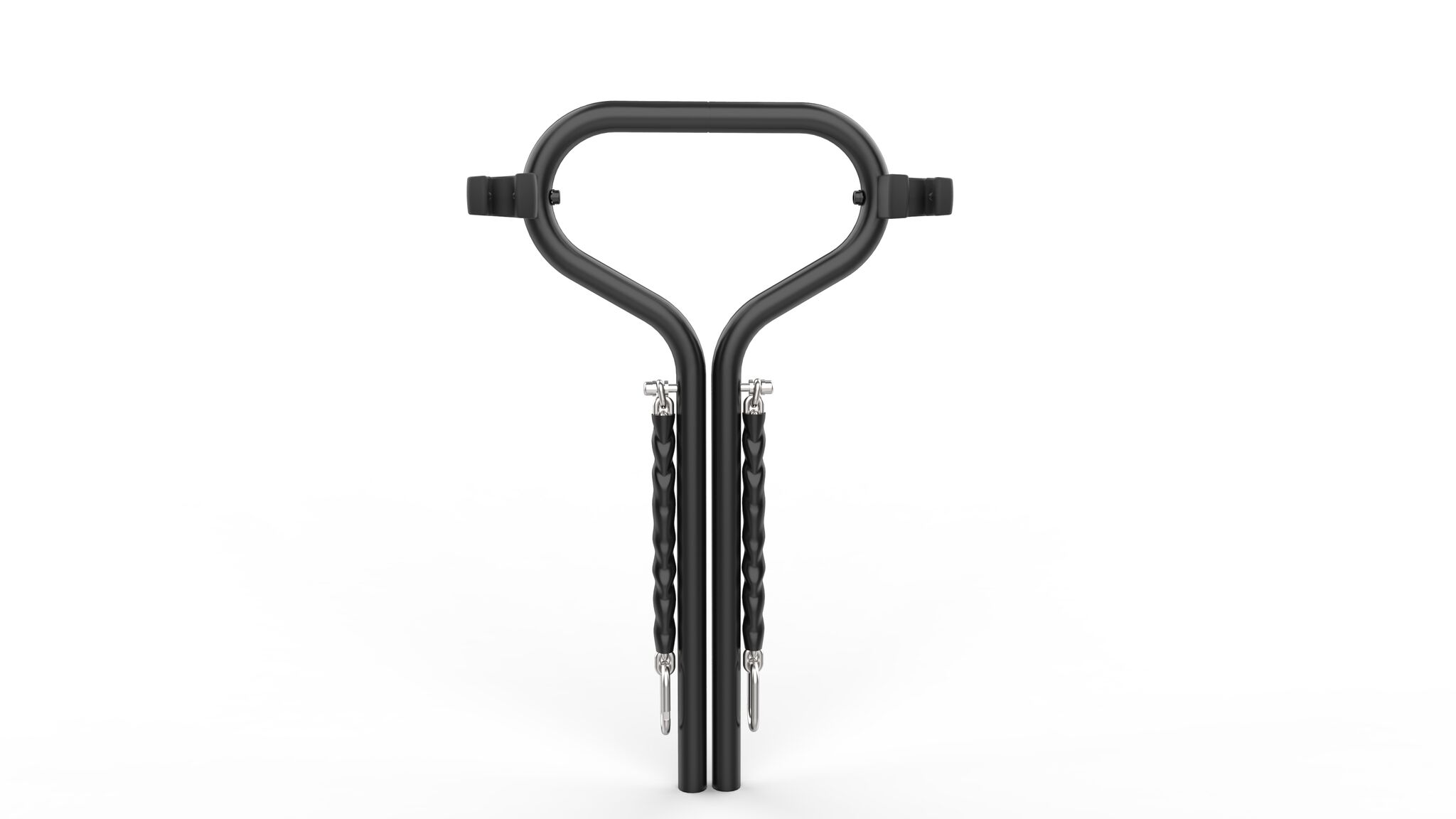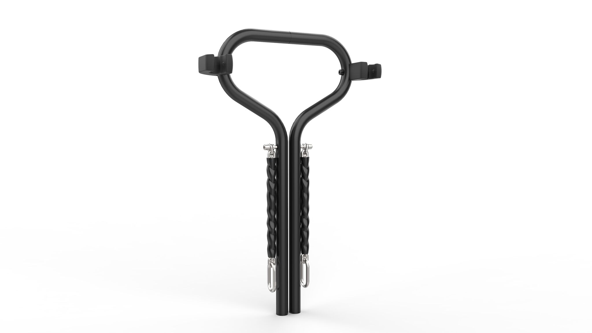 - Telineen yläosassa on pidikkeet kahta pyörää varten, pyörät seisovat tukevasti pystyssä eivätkä hankaudu telinettä vasten.
