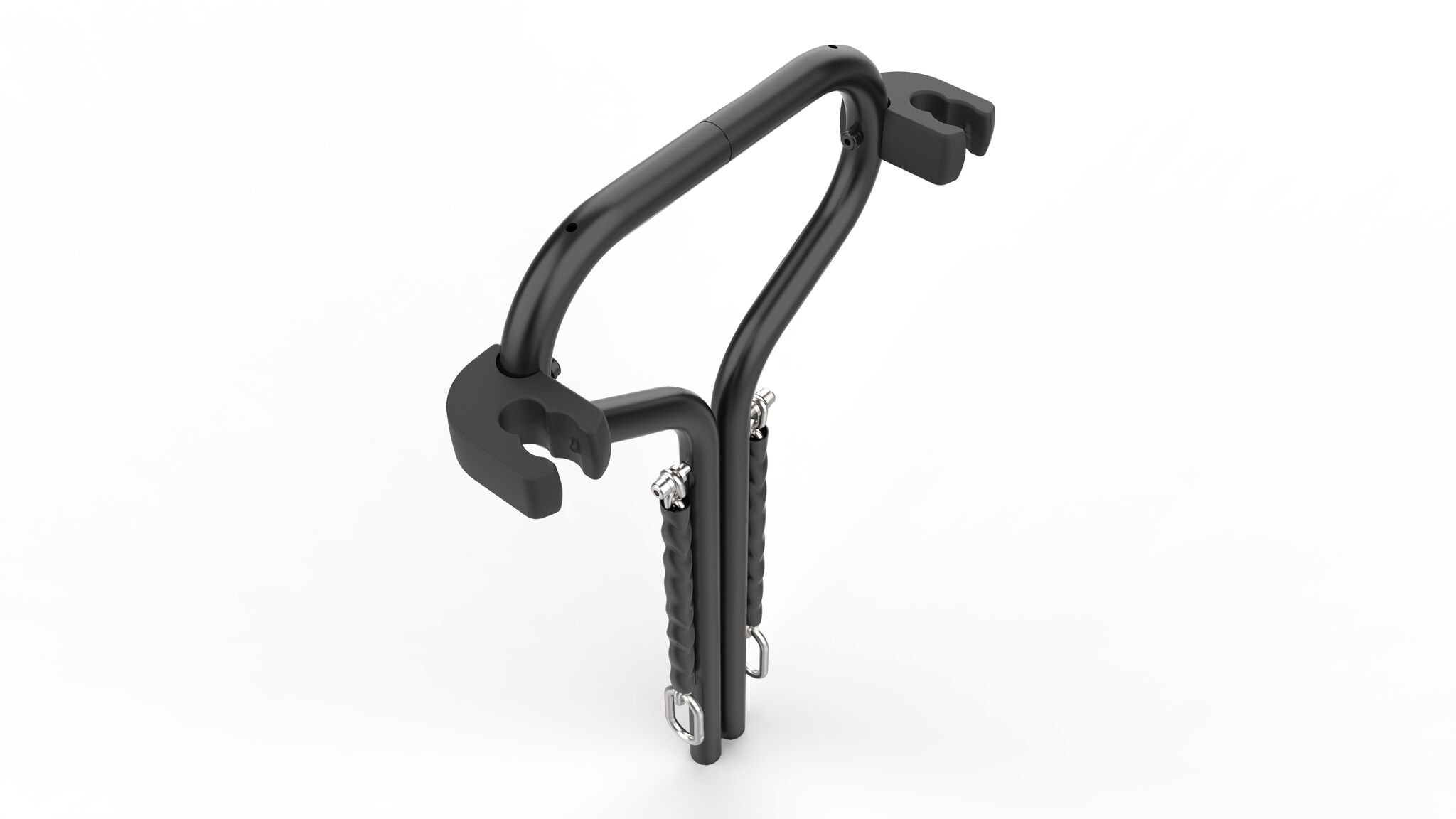 Pyöräkiinnikkeen materiaali on ”Lagopuria”, puolittain kovennettua, joustavaa valumuovia. Kettingit (lisävaruste) on kiinnitetty tukevasti telineeseen. Asennuksen on hyväksynyt ”Svensk Brand- & Säkerhetscertifiering AB”.