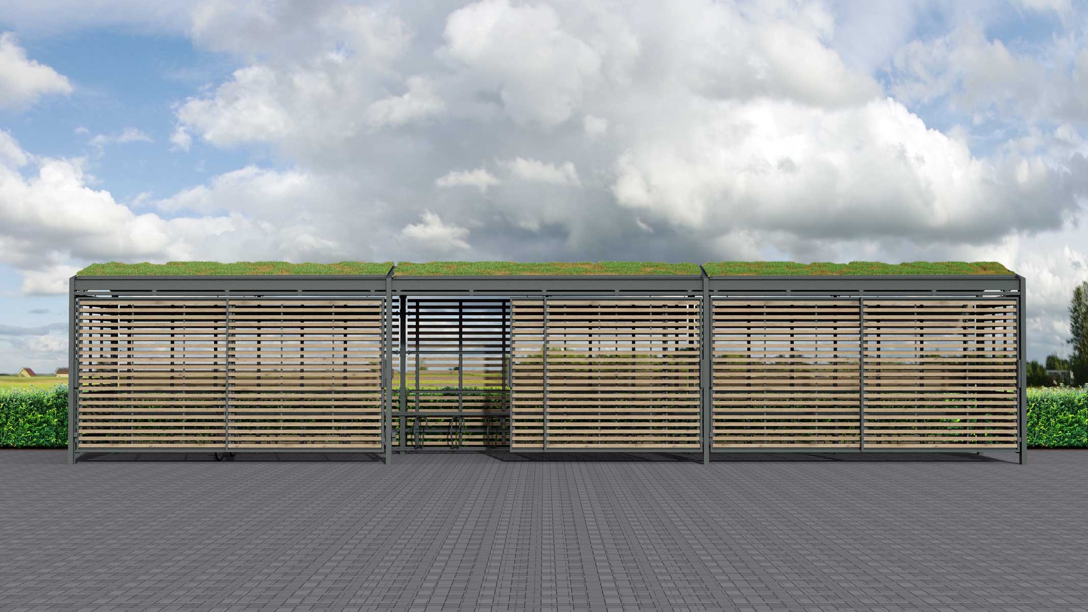 För alla varianter och artikelnummer, se produktblad över cykelhus. Fyll i formulär för offert.
