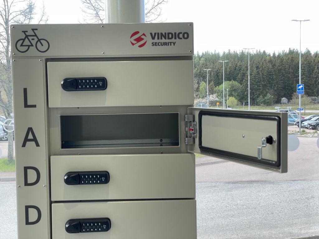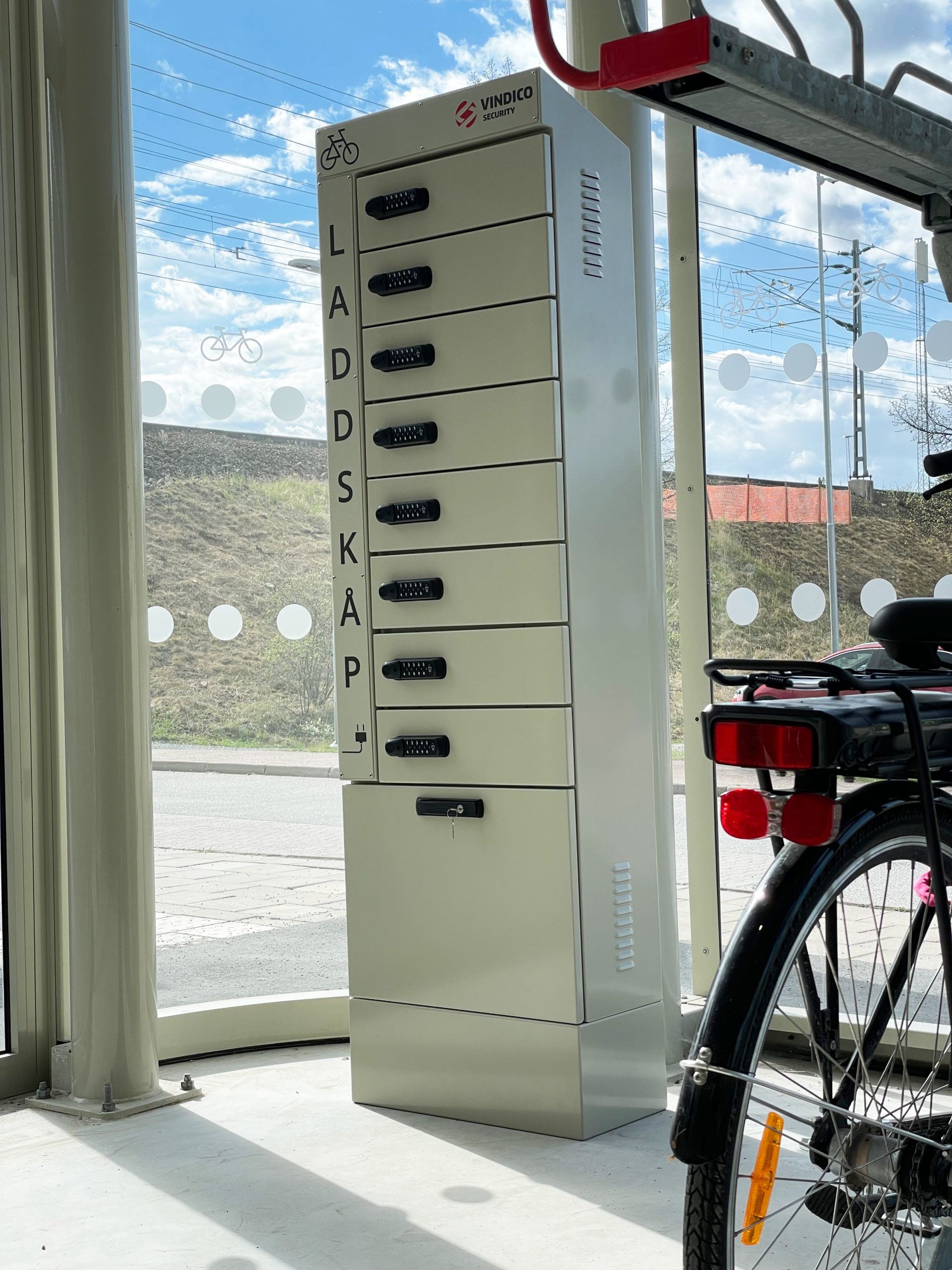Förvaring och laddning av upp till åtta elcykelbatterier. Skåpet är byggt i rostfritt stål med termostatstyrt värmeelement samt automatisk dränering. Elen dras in underifrån i skåpet och fästs i underlaget. Facken är väl ventilerade och de är utrustade med eluttag för anslutning av laddare.