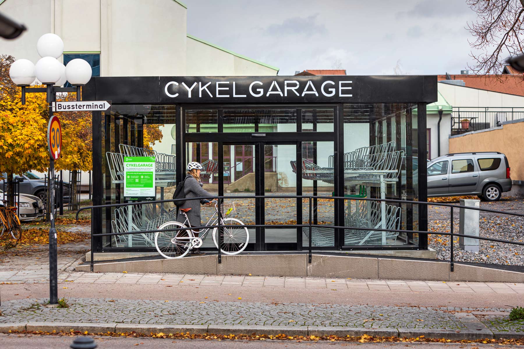 LINK cykelgarage för offentlig miljö med glasväggar