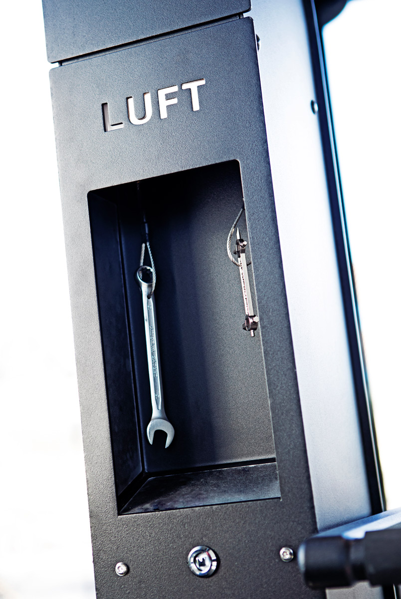 En servicestation med både cykelpump och multiverktyg för cyklar i offentlig utemiljö. Passar i städer, kommuner, bostadsrättsföreningar eller andra företag och verksamheter som vill ge extra service till cyklisten.