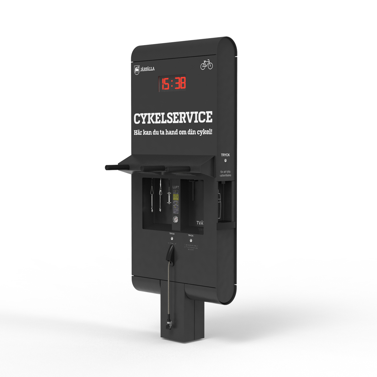 Finns i två storlekar och två varianter, enkel- och dubbelsidig, beroende på plats och cykelflöde. Cykelservicestationen kan fås med logo eller symbol. Går att få med manometer (Tryckindikator för lufttrycket i däck).