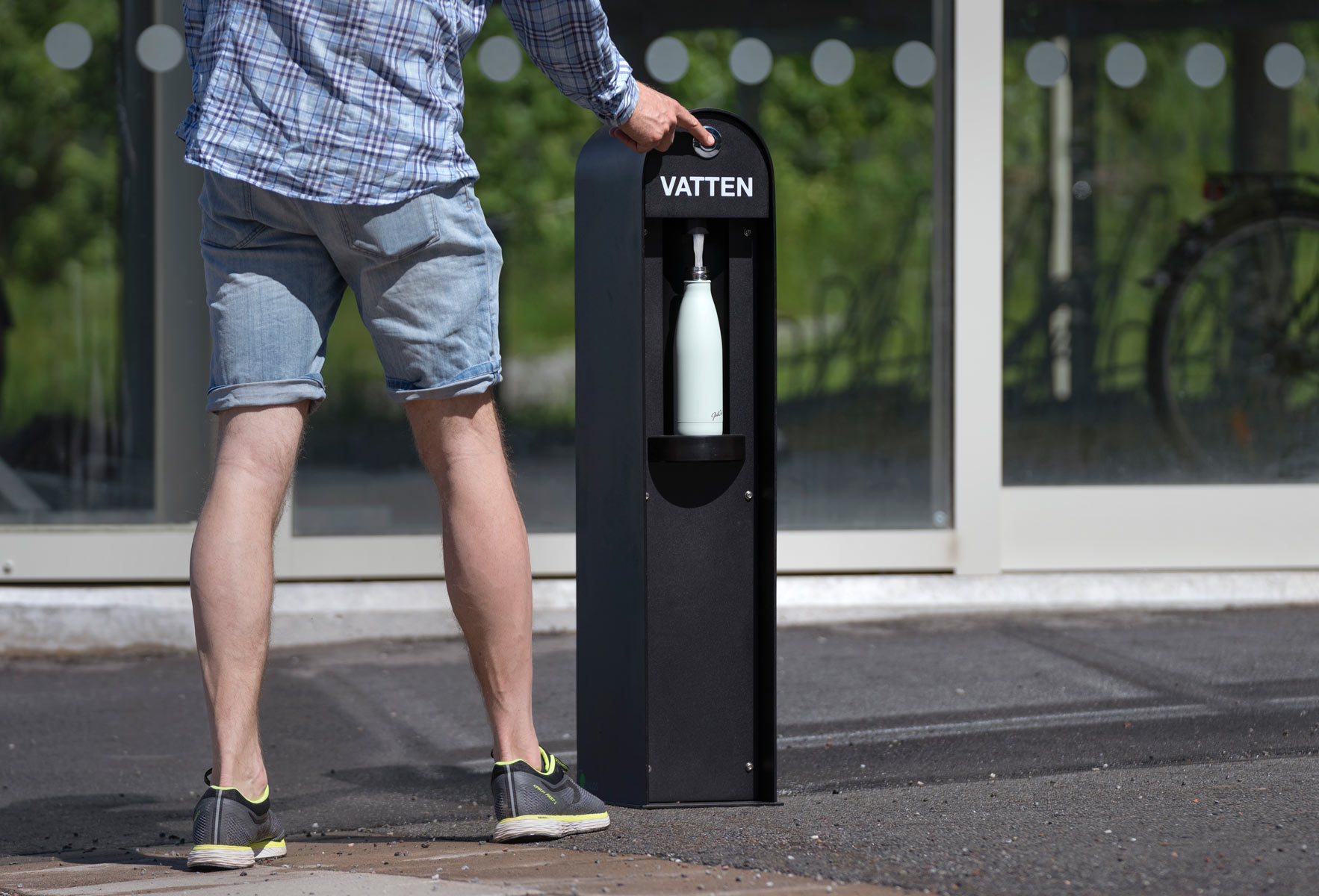 Offentlig vattenstation för påfyllning av dricksvatten i vattenflaskor, med fokus på hygien och driftsäkerhet. Drivs helt utan el och är konstruerad med stålchassi för att tåla den tuffa offentliga utemiljön. Fungerar året om och kan placeras i urbana miljöer och vid sidan av cykelbanor.